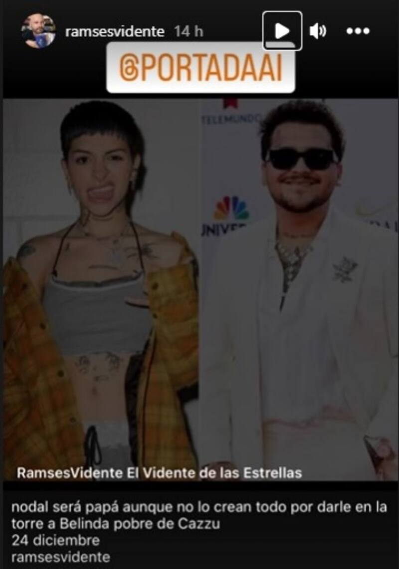 Posterior a esa contingencia, y cuando Nodal y Cazzu paseaban su amor por Latinoamérica, fue que Ramsés Vidente adelantó el 24 de diciembre lo del embarazo de la artista argentina: "Nodal será papá, aunque no lo crean, todo por darle en la torre a Belinda, pobre de Cazzu", señaló el futurólogo.