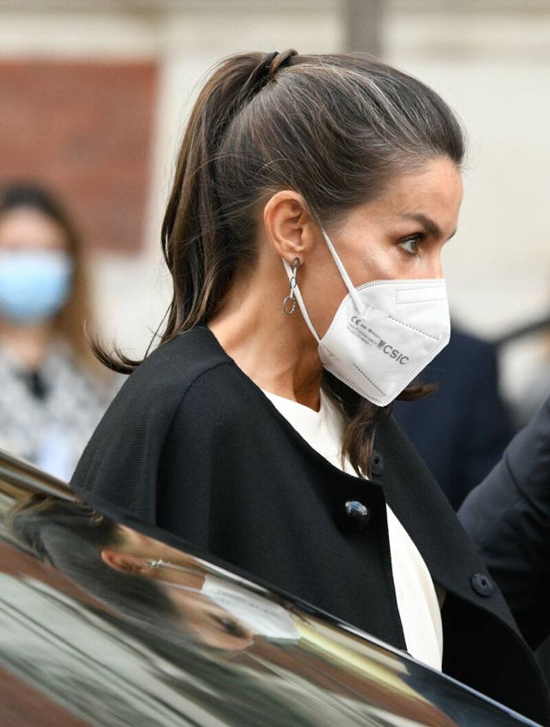 Letizia demostró una vez más que se puede envejecer y seguir siendo glamurosa, en el evento, la Reina lució un peinado recogido hacía atrás, haciendo más notorias sus canas y los pequeños cabellos sueltos.