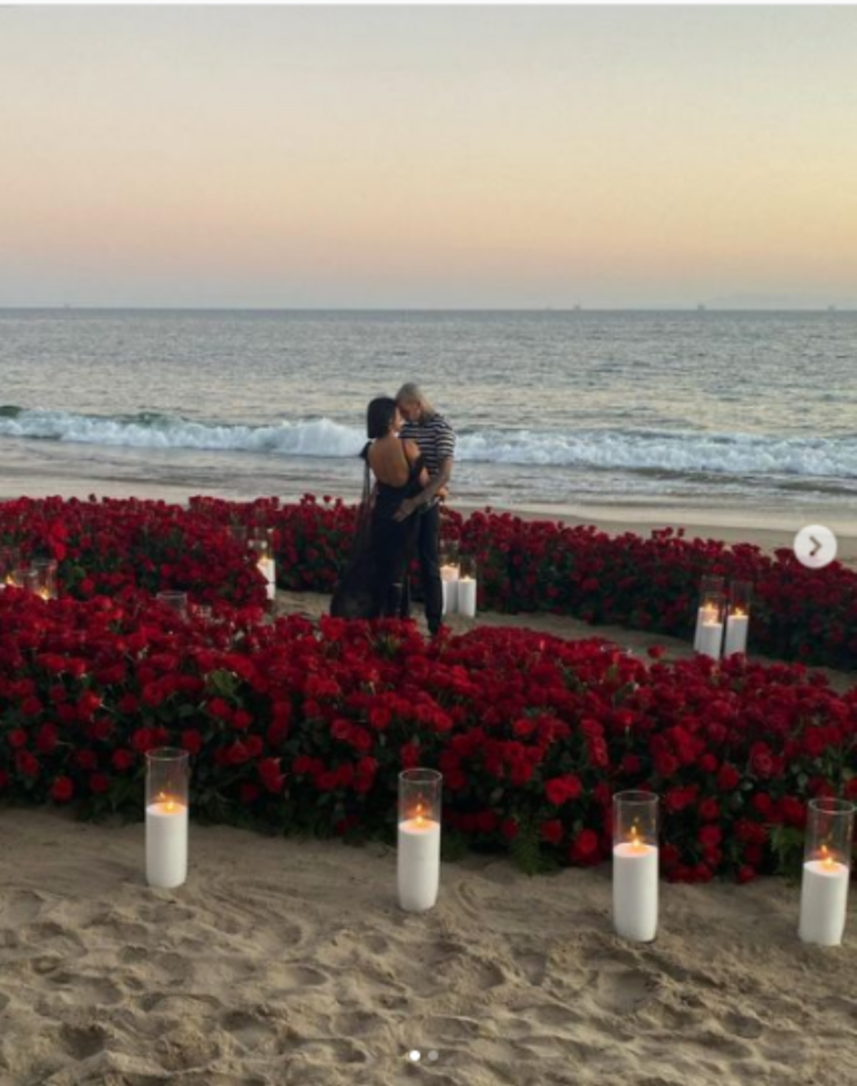 “Forever Travis Barker”, escribió en aquel entonces con una imagen que decía más que mil palabras, pues en ella se podía ver a los enamorados justo al centro de cientos de flores rojas en forma de corazón y velas que hacían aún más romántico aquel acontecimiento que tuvo lugar el 17 de octubre en el hotel Rosewood Miramar Hotel, junto a la playa en Montecito, California.