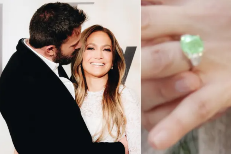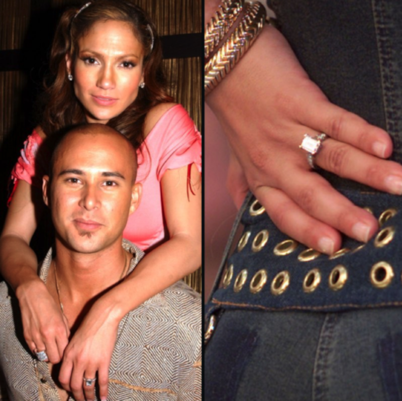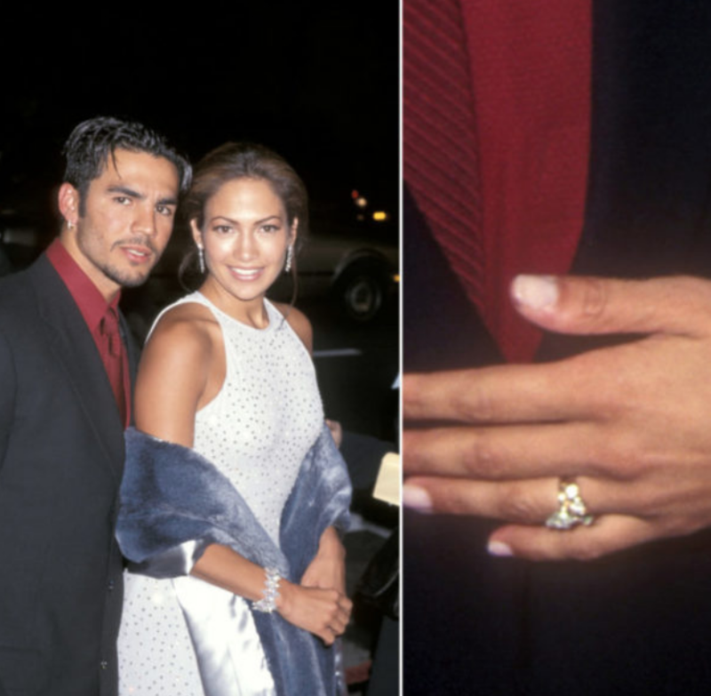 Ben Affleck le propuso matrimonio a Jen en el año 2002 con un anillo de compromiso de diamantes rosas con corte radiante de 6.10 quilates de la famosa marca Harry Winston y costó casi millón y medio de dólares. Su compromiso no prosperó y lo rompieron en 2004.