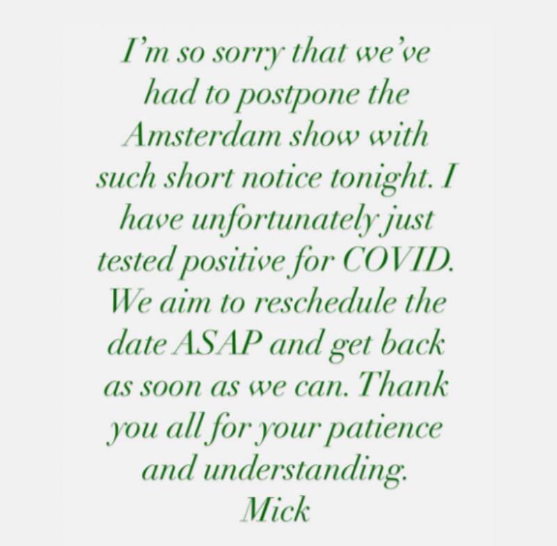 “Desafortunadamente di positivo de Covid 19. Nos gustaría reprogramar la fecha lo antes posible y volver tan pronto como podamos”, explicó Jagger en un comunicado. Ámsterdam sería la cuarta parada de la gira europea Stones Sixty, luego de la presentación que brindaron en Liverpool la semana pasada.