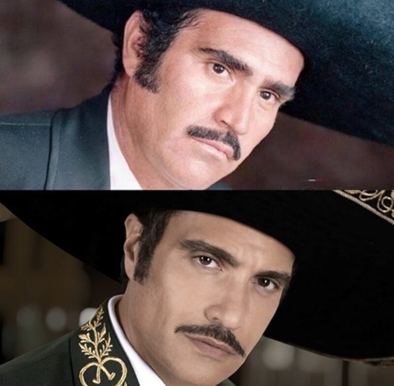 El parecido es impresionante, incluso en el posteo hay un retrato del cantante cuando era más joven, en el que se agrega una segunda foto de Camil posando como Fernández, utilizando un sombrero y su tan llamativo bigote.