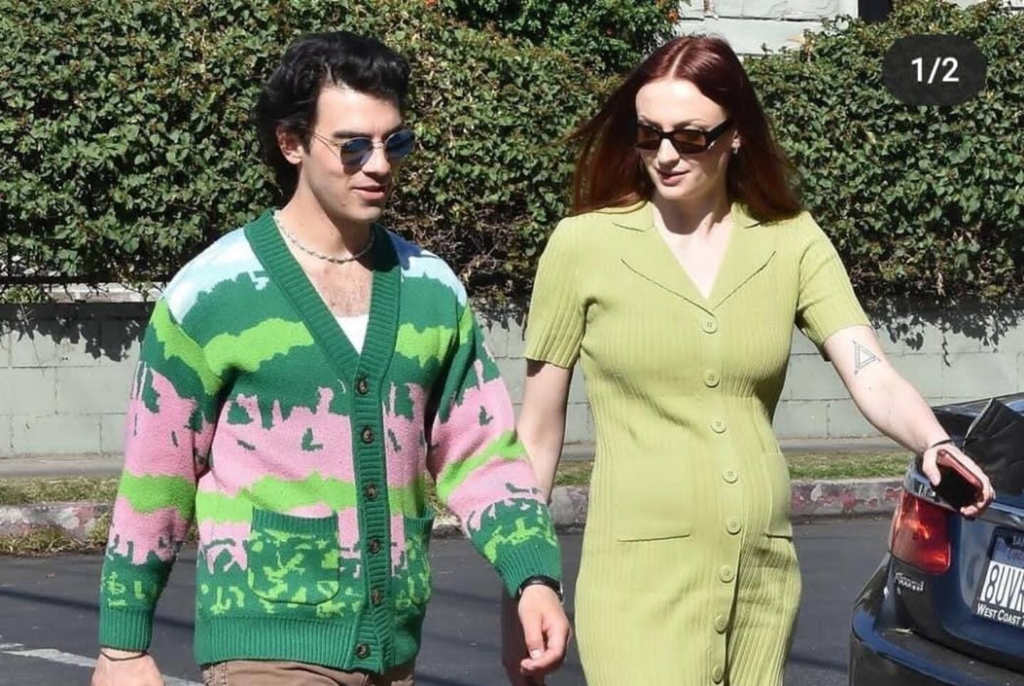 En las fotos publicadas por Just Jared se puede ver a la pareja vestidos en color verde, el cantante con un suéter y a la actriz con un ligero vestido de tono limón con el que se ve mucho más clara su pancita de embarazada.