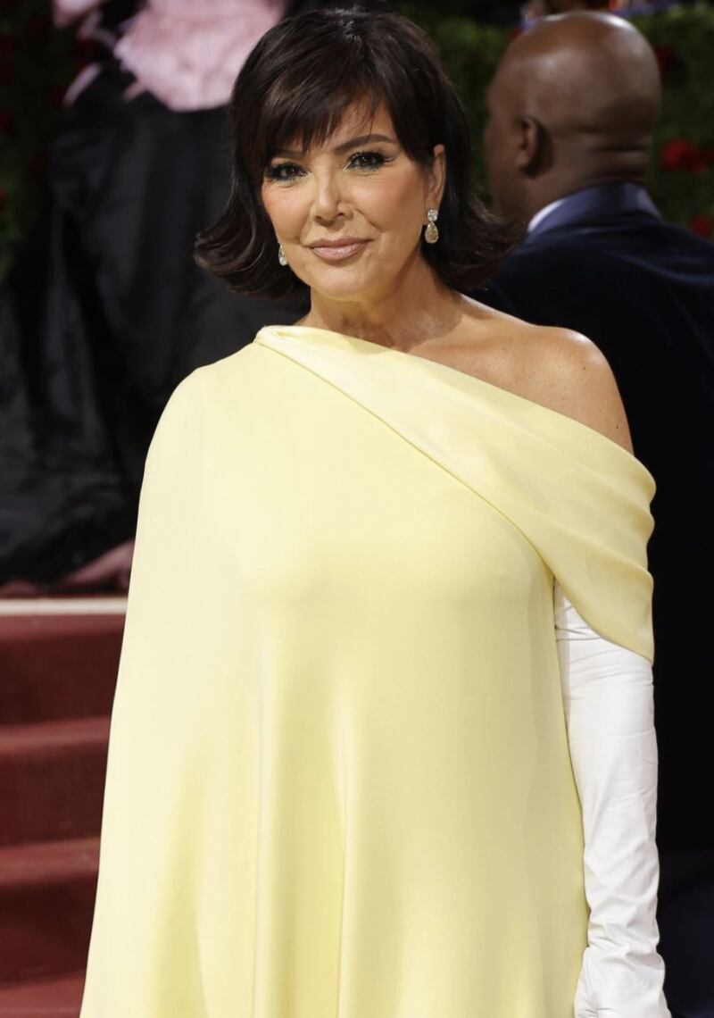 Mientras que Khloé optó por una pieza dorada con aplicaciones de pedrería y una mangas abullonada en color negro diseñado por Moschino, le dio el toque de elegancia con unos guantes negros de satín. Kendall portó un conjunto negro de falta con corte princesa y un top de transparencias de la firma Prada, llamó la atención sus cejas decoloradas que la hacían lucir diferente. Por su parte, Kris Jenner prefirió un vestido largo en tono amarillo pastel con un hombro descubierto de Oscar de la Renta, usó guantes blancos y su recién estrenado look de cabello corte bob.