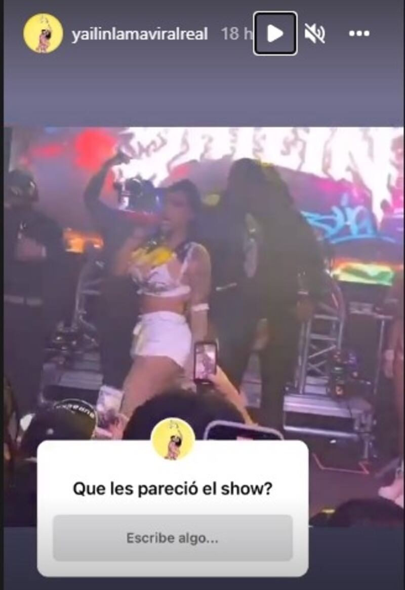 La cantante prosiguió su show como si nada hubiera sucedido, demostrando su profesionalismo. Incluso, subió el video a su cuenta de Instagram y en una de sus storie hasta preguntó qué les había parecido el espectáculo. Hasta ahora, ni siquiera Anuel, que siempre la alienta en su carrera artística se ha manifestado. Sin duda, para ella aplica el viejo dicho que "el show debe continuar".