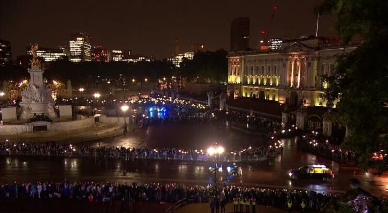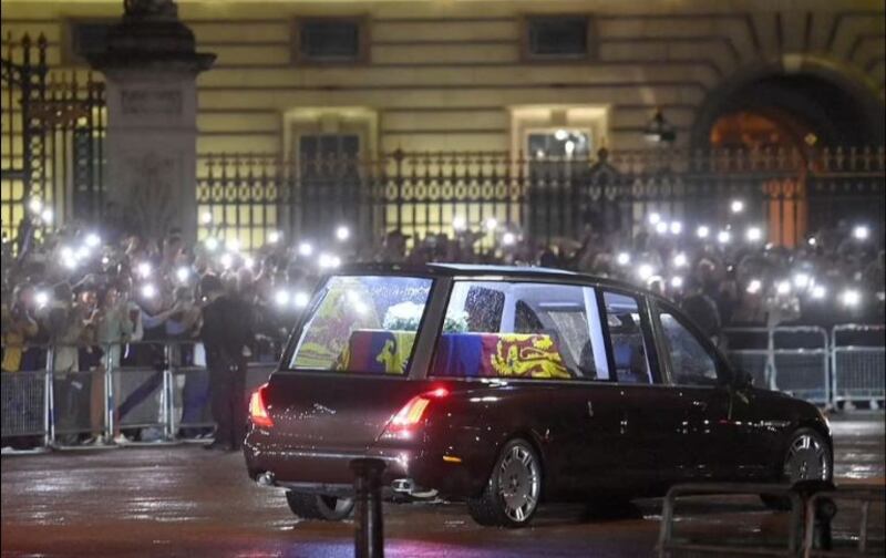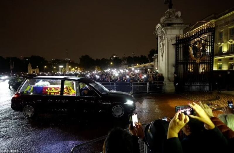 En medio de miles de personas, el féretro llegó al Palacio de Buckingham donde ya se encuentra el rey Carlos III (73), el príncipe William (40) y Harry (37) quienes la recibirán y harán una recepción en esta única noche que pasará en el palacio antes de que mañana por la mañana, la fallecida monarca viaje al Palacio de Westminster en donde se quedará hasta el lunes.