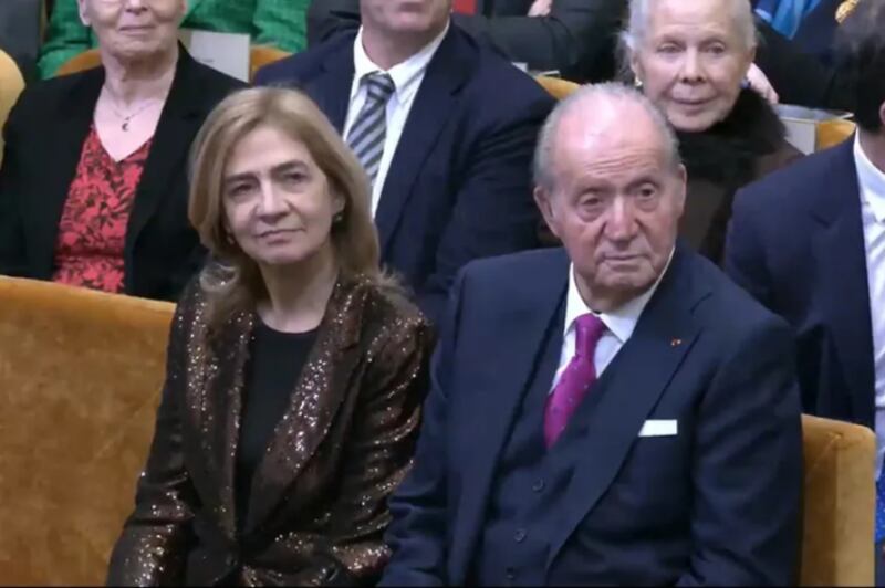 Luciendo un impecable traje azul con una corbata de color burdeo, el rey emérito tuvo una gran recibimiento mientras entraba al lugar minutos antes de que comenzara la ceremonia. Don Juan Carlos y su hija fueron protagonistas del evento, sentados en primera fila al igual que la familia de Vargas Llosa.