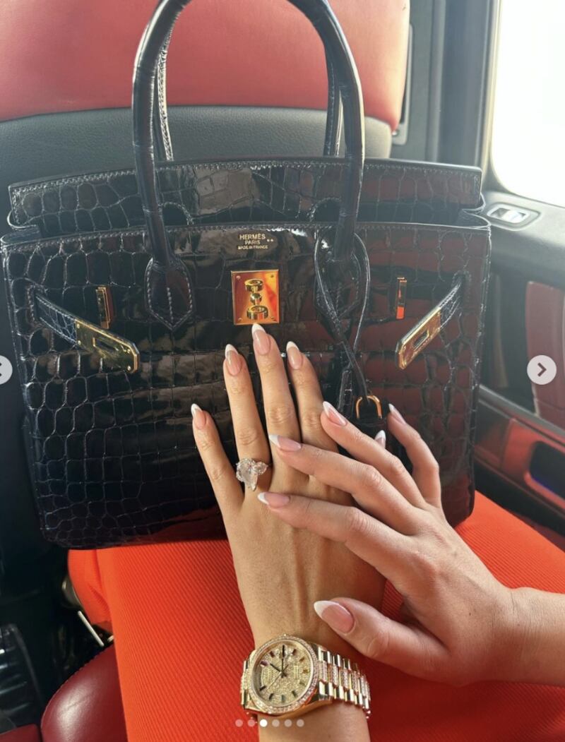 Aunque a simple vista el anillo es bastante llamativo, la modelo quiso compartir una foto al detalle de su mano luciendo el llamativo anillo, lo que prendió las alarmas de un compromiso entre la empresaria y el futbolista.