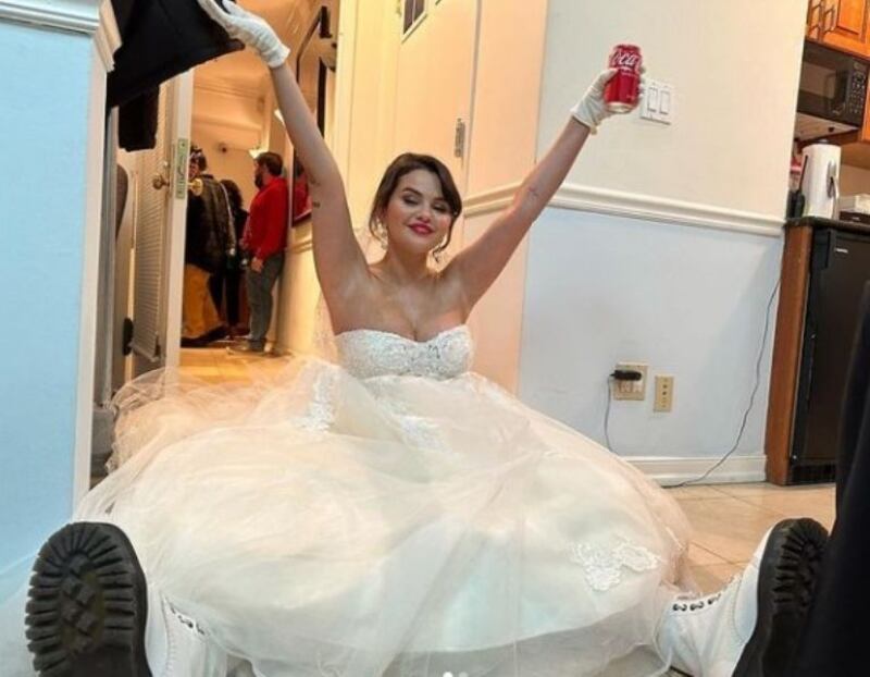 Finalmente, la propia Selena en su cuenta de Instagram publicó otra frase decidora: "No tengo subtítulo. Sólo un día normal en el trabajo", acompañando una fotografía de ella sentada en el piso, con su vestido de novia, una lata de gaseosa cola en su mano izquierda y unos botines para descansar sus pies. Fin del día que dejó a sus millones de seguidores, por unos pocos minutos, al borde del colapso
