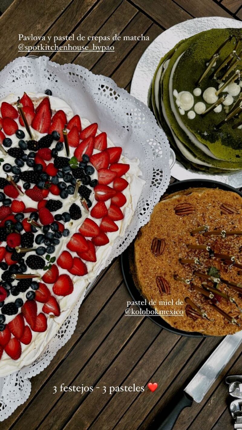 A través de sus stories, la también modelo dejó ver cómo le celebraron, con una carne asada al aire libre, además de que lo agasajaron con varios pasteles de nuez y otros más de frutas como frutos rojos. No pudieron faltar además las dotes culinarias del festejado, quien se encargó de hacer el asado.