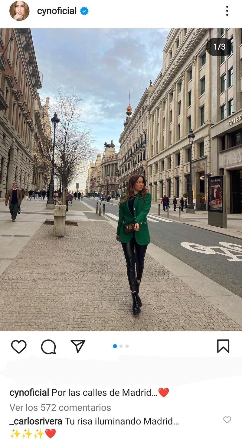 Hace unos meses Cynthia compartió una serie de fotografías paseando por Madrid, España, y su esposo comentó la publicación. "Tu risa iluminando Madrid", escribió junto a varios emojis de corazones. Esta y otras frases son las que comenzaron con los rumores sobre si la canción es para la presentadora y el posible bebé que están esperando tener.