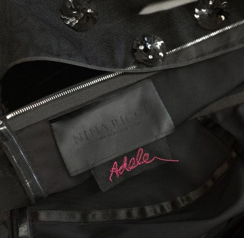 En el interior del vestido colocaron una etiqueta más que lleva el nombre de la intérprete de Someone like you bordado con letras rojas. “Me siento honrado de vestir a alguien que encarna, magnifica y brilla completamente con verdadera feminidad”, escribió Harris en redes al compartir las fotografías de Adele usando su diseño.