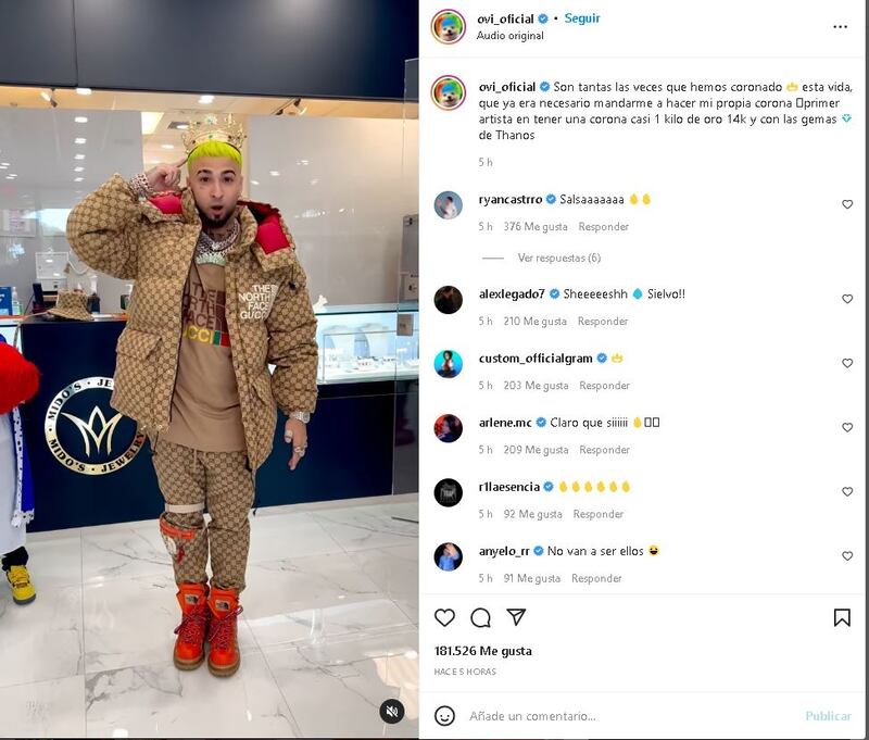 Y aunque alardeó sobre esa costosa joya dorada llena piedras preciosas, también dijo: "Salimos de Cuba y llegamos a Estados Unidos, coronamos. Llegamos a hacer música a este país y estamos viviendo de ella, coronamos…", palabras que dejan claro que no olvida sus raíces ni cómo comenzó desde abajo.