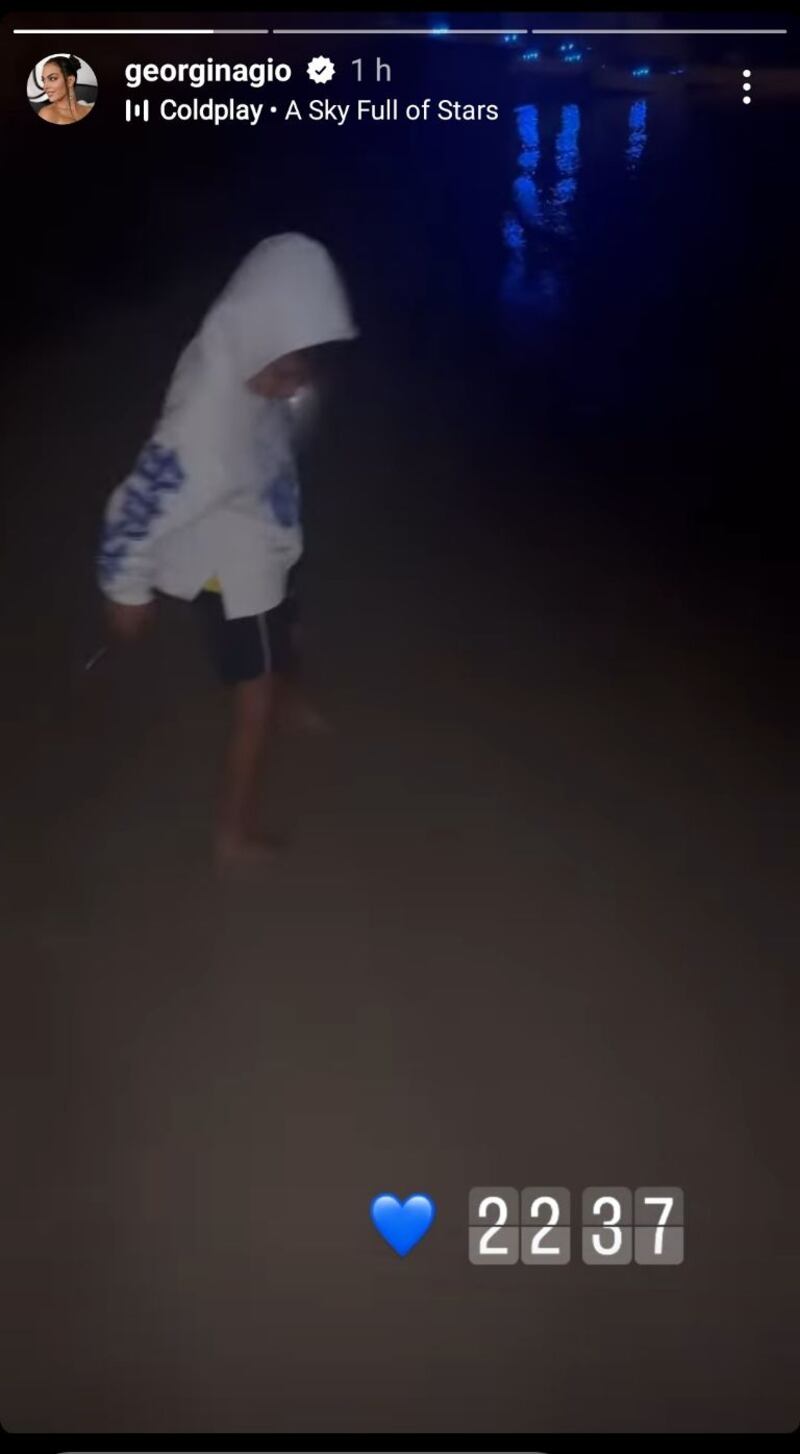A través de redes sociales Georgina compartió un par de fotografías junto a Alana, Eva y Mateo, sus tres hijos pequeños que la acompañaron a dar un paseo sobre la arena con las olas del mar de fondo; sin mencionar nada, solo posteó este instante que tuvo con los niños en la noche.