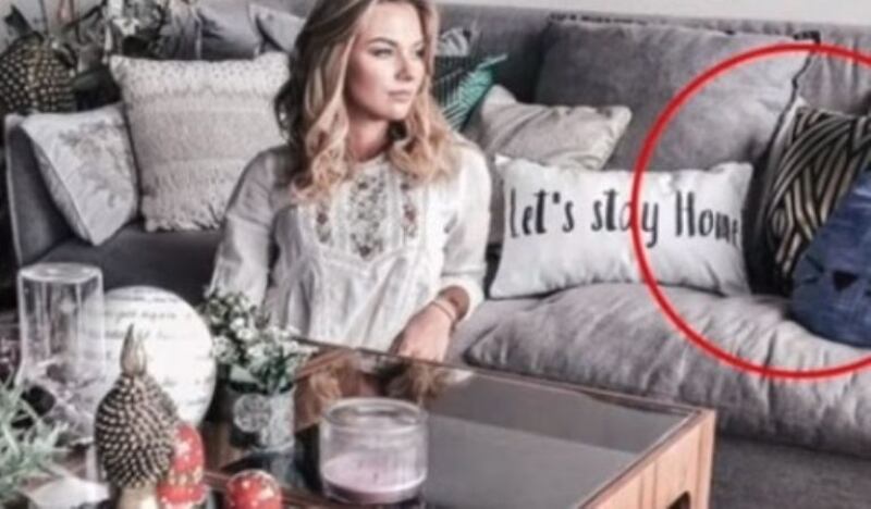 Fueron muchas imágenes y posteos que la actriz mexicana vio, entre ellos se encontraba otra foto en la que nuevamente salía una de las maletas de Gabriel y Baeva colocó justo al lado una almohada que decía :“quedémonos en casa”.