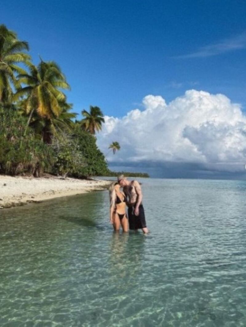 En dos momentos los captaron juntos tomados de la mano mientras se adentraban al mar, también aparecieron dándose un beso. La empresaria tomó una foto de Davidson que se encuentra sentado al interior del yate, no voltea a la cámara pero sonríe ligeramente. Los retratos de su novia fueron tomados por él, por la sombra se nota que está parado frente a ella y la toma en varios momentos.