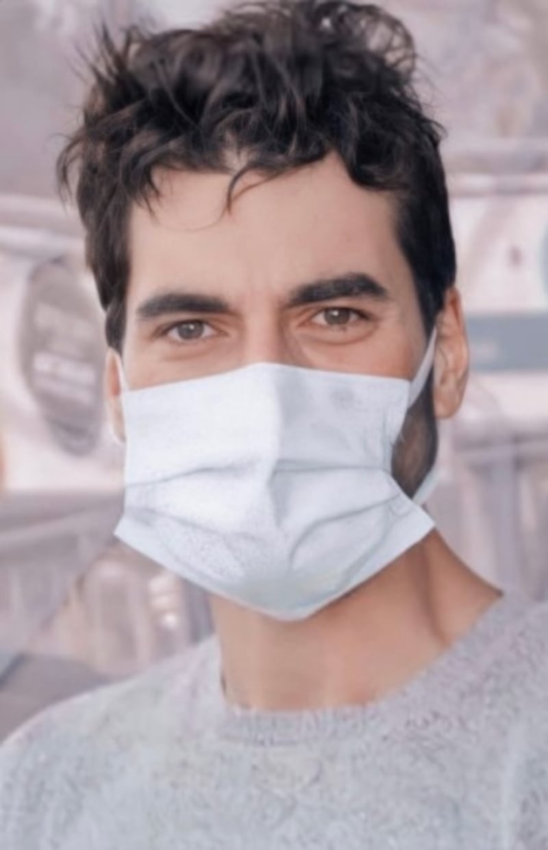 En la imagen aparece con una mascarilla que cubre gran parte de su rostro, pero es posible ver su pelo castaño desordenado y la mirada profunda de sus ojos color miel–verdosos que han cautivado a miles y miles de fans en los más de 100 países en donde Hercai se exhibe, entre ellos Estados Unidos (Telemundo), Argentina (Telefé) y Chile (TVN). En Twitter sus fanáticas alaban que aparece más repuesto, como deja ver el jersey gris ajustado que tan bien le luce. Y es que al terminar de grabar "Hercai" en abril pasado, su delgadez preocupaba a sus seguidoras.