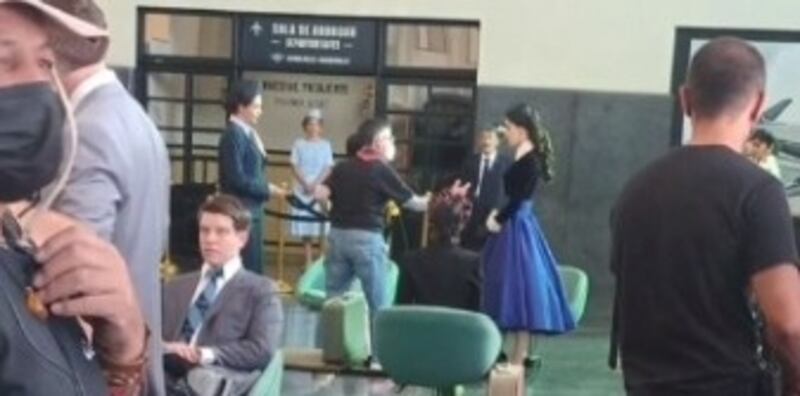 En redes sociales se han filtrado algunos retratos de Sandra en los que aparece con una falda azul, camisa blanca y un suéter negro, tiene el cabello ligeramente recogido y se mantiene atenta a las indicaciones. La protagonista usa vestuario de la época y en el fondo se ve una mujer con vestido azul claro además porta un sombrero del que sobresale una pluma.