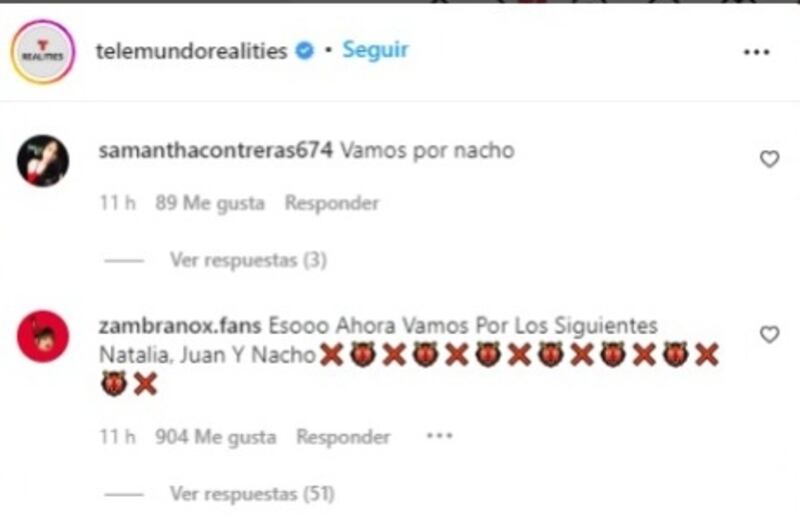 Aún está en espera cómo votarán los famosos restantes para nominar a los siguientes pero los cibernautas ya han expresado que Natalia Alcocer y Juan Vidal tampoco son de su gusto llevándolos así a la lista negra en la cual se encuentra Nacho. El pensamiento del público es totalmente desconocido para los participantes y hasta que salgan del programa podrán saber todo lo sucedido.