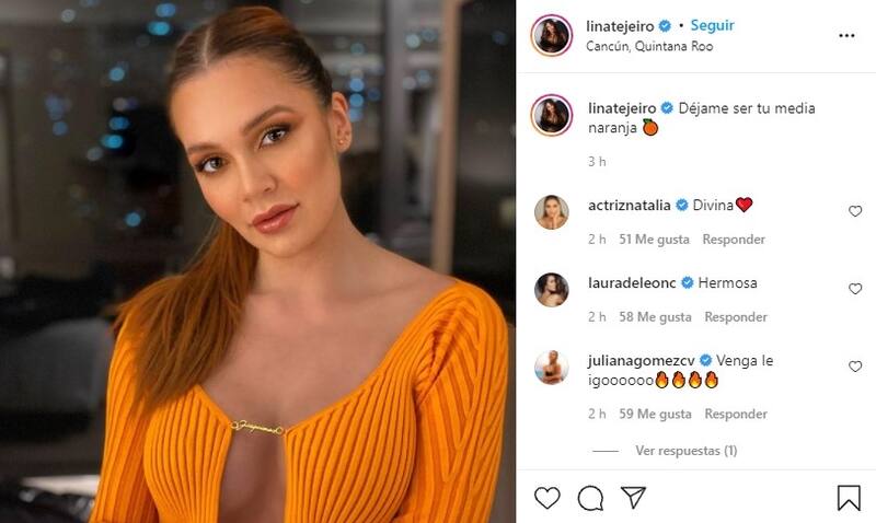 La tarde de este sábado Lina subió una fotografía a Instagram donde lucía bellísima, con una escotada remera. El mensaje era claro y directo: "Déjame ser tu media naranja".