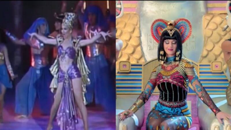 Uno de los videos más llamativos de Perry es Dark Horse por la temática del antiguo Egipto, en este videoclip utiliza una disfraz de egipcia como el que usó Thalía en el show Siempre en domingo.