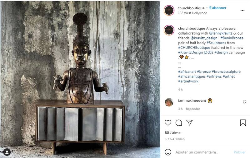 ¡Siempre es un placer colaborar con Lenny Kravitz  y nuestros amigos @kravitz_design! Par de medio cuerpo de #BeninBronze #Esculturas de #CHURCHBoutique presentadas en la nueva campaña #KravitzDesign", dice una posteo de la marca.