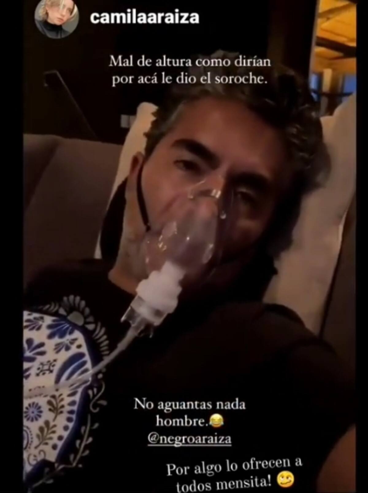 "No aguantas nada hombre", escribió Camila junto al video del actor con un tanque de oxígeno. También reveló que ha estado tomando té de coca para combatir los problemas de oxigenación que ha tenido. El té es originario de los Andes de Bolivia. "¿Quién se va a tomar su té de coca? Porque ayer se lo estaba cargando el payaso. Son cuatro mil 300 metros a nivel del mar y pues nosotros estamos estamos a dos mil y tantos en México", expresó