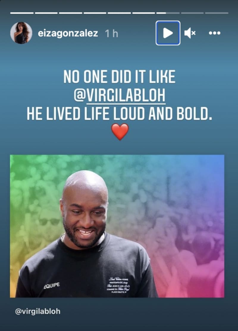 Diversas personalidades del mundo del espectáculo lamentaron la muerte del creativo, como la mexicana Eiza González que compartió en sus historias un mensaje hacia Alboh. "Nadie fue como Virgil Abloh. Vivió la vida de una manera atrevida", escribió la actriz.