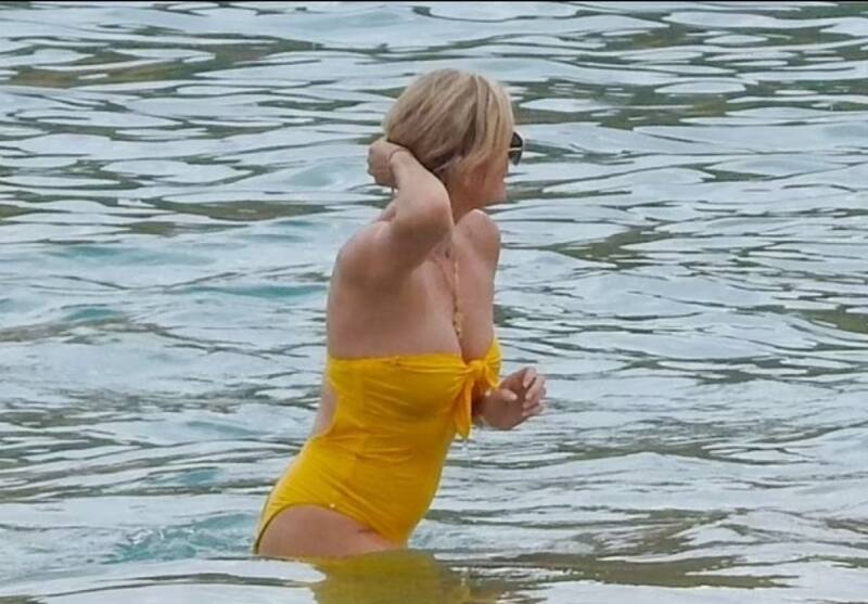A la actriz sudafricana (46) se le pudo ver luciendo un bañador amarillo, en una de las playas del balneario junto a su madre, Gerda, aunque en ningún momento aparecieron sus dos hijas adoptivas, Jackson (10) y August (6).