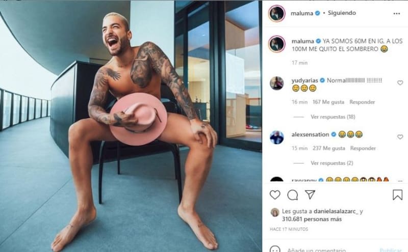 Pero esta vez, el desafío de Papi Juancho rompe todas las normas, y si se llega a cumplir, podríamos pasar a otro nivel. El objetivo está fijado: Maluma quiere llegar a tener 100 millones de seguidores en su cuenta de Instagram, se quita el sombrero (ver foto).