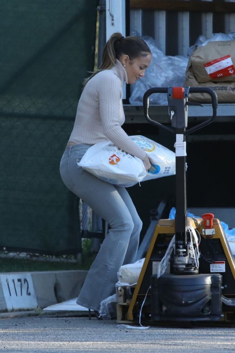 En unas fotografías difundidas en redes sociales, puede verse al también cineasta tomas varios bultos de comida y cargarlos sin ningún problema al interior de su hogar; pero JLo no se quedó atrás y también mostró su fuerza al llevar una bolsa de arroz.