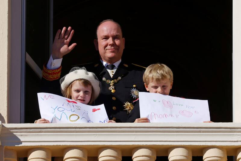 Alberto de Mónaco ha continuado con sus apariciones públicas en compañía de sus mellizos, Jacques y Gabriella. Para el evento del Día Nacional de Mónaco, los niños mostraron carteles que decían "te extraño mamá" y "te amo mamá".