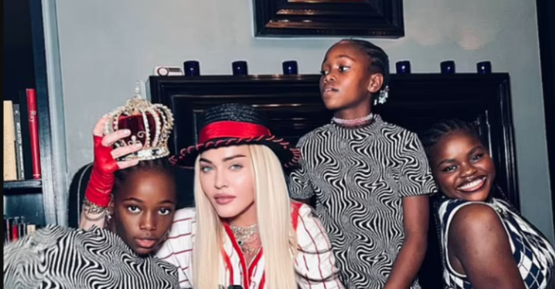 Haciendo una clara referencia a su apodo: 'Reina del pop', Madonna lució una corona en las fotos y video que compartió el pasado domingo en sus redes sociales en donde posó con su hija Mercy, de 15, y las gemelas Estere y Stella, de nueve.