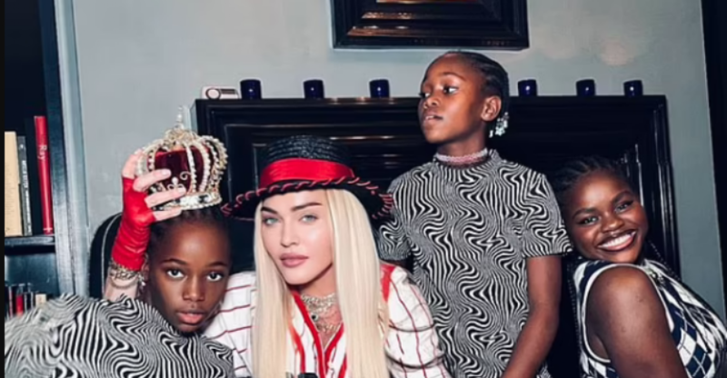 Haciendo una clara referencia a su apodo: 'Reina del pop', Madonna lució una corona en las fotos y video que compartió el pasado domingo en sus redes sociales en donde posó con su hija Mercy, de 15, y las gemelas Estere y Stella, de nueve.