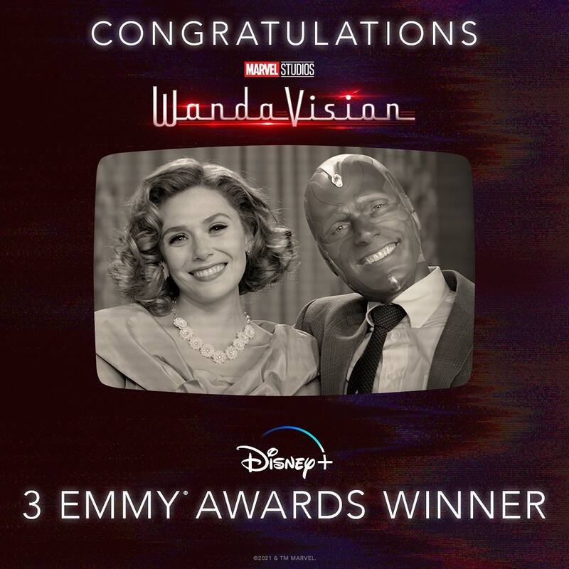 El pasado sábado, el programa protagonizado por Elizabeth Olsen como Wanda Maximoff, y Paul Bettany como Vision, obtuvo los premios a Mejor Diseño de Producción para un programa narrativo (media hora) y Mejores Disfraces de Fantasía/Ciencia Ficción gracias al capítulo Filmada con Público en Vivo. Reanudada la premiación el día domingo, WandaVision se llevó el galardón a Mejor Música y Letras Originales por el tema Agatha All Along, del capítulo Abajo la Cuarta Pared.