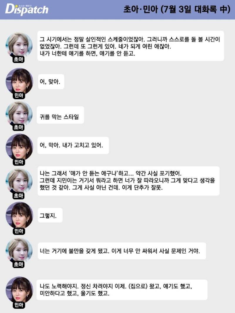 "Dispatch ha cubierto el conflicto de diversas maneras. Ante todo, existía mucha preocupación sobre la cobertura del reporte. Después de una larga discusión, decidimos revelar los mensajes de texto, KakaoTalk (aplicación de mensajería usada en Corea), y conversaciones. Si solo un lado del argumento se repite, el conflicto nunca terminará", declaró Dispatch.