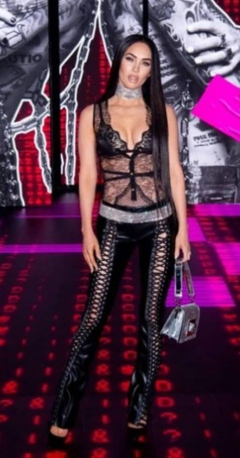 Más temprano, la pareja había sido vista en Milán. MGK cambió su apariencia monocromática por un suéter rosa brillante, que combinó con pantalones grises a rayas y joyas plateadas. Megan iba con un mini vestido negro con detalles de malla transparente, junto con una gabardina negra y tacos negros.