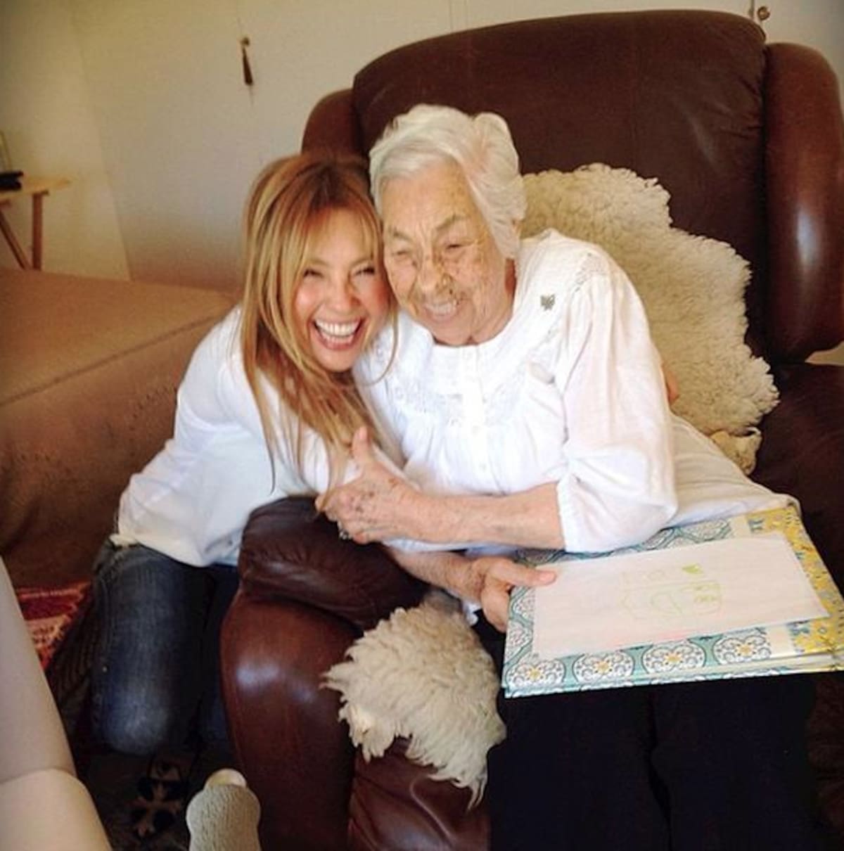 La cantante de Arrasando subió una foto en donde se ve que hizo una videollamada con su abuelita y se ven unas manos entrelazadas: "Estas son las mañanitas que cantaba el Rey David! 104 años de vida! Te celebro y te amo abuela mia. Feliz cumpleaños! Aquí las dos nietas cantándole las mañanitas agarradas de su mano".