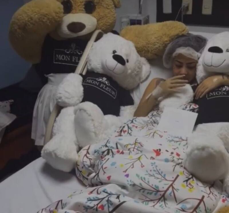 Tal como se pudo ver en la cuenta de Instagram de Yailin, osos de peluche de diversa envergadura, dos grandes cajas repletas de rosas rojas y un sobre cuyo remitente fue tapado, aunque todos saben su procedencia, fue lo que la cantante recibió mientras se le veía guardando reposo en la sala de la clínica.