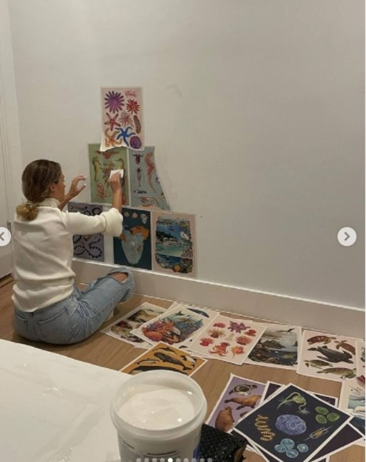 La esposa de Camilo ha querido mostrar algunos de los detalles artísticos que tendrán los cuartos, como estampados de animales acuáticos que se están realizando uno por uno ayudados de otras personas.