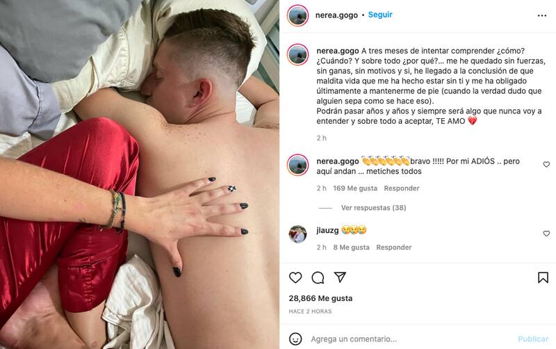Lo que causó preocupación entre sus amigos fue la frase con la que se despidió asegurando que pronto estarían juntos:"Te amo con cada milímetro de mi ser y eso va a ser hasta mi último día, espero que nunca me olvides porque yo no lo haré, espérame que te prometo que te voy a alcanzar".