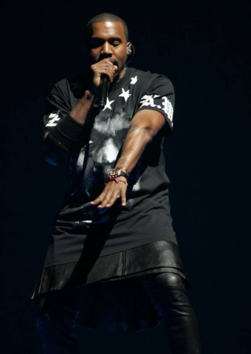 El ex esposo de Kim Kardashian lució un kilt y una sudadera de Givenchy, el mismo outfit que usó para la gira Watch The Throne. Dos años después usó esta misma tenencia para el festival South by Southwest.