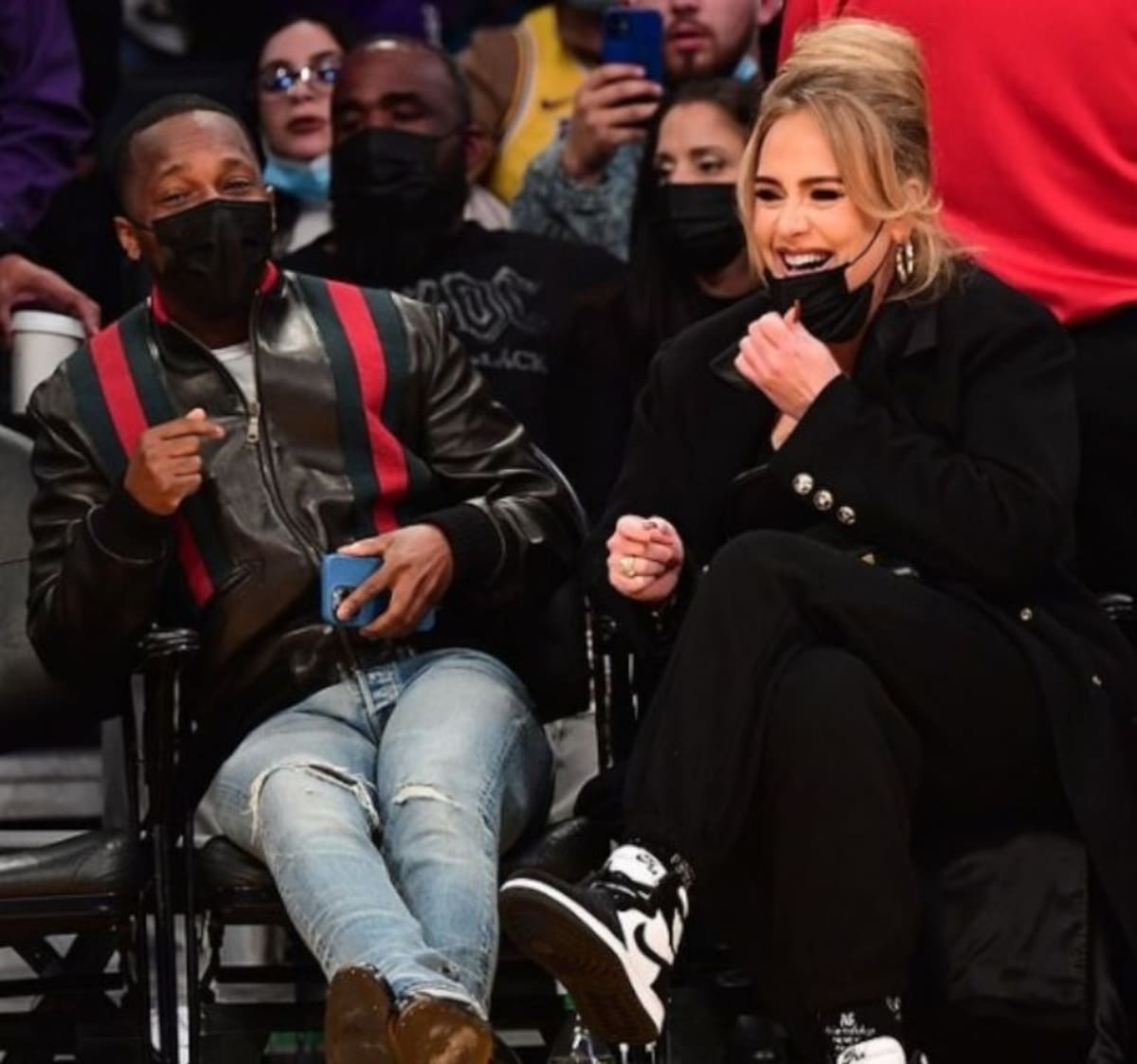 Tanto Adele como Rich usaron máscarillas para prevenir la propagación del covid-19. El agente de LeBron vestía una chaqueta de cuero Gucci, con jeans y botas negras.