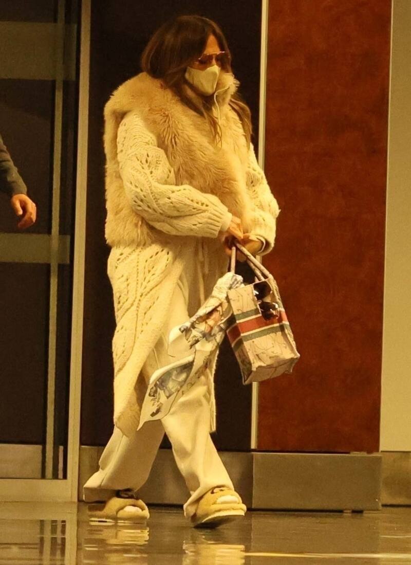 La novia de Ben Affleck, de 52 años, intentaba mantener un bajo perfil. Llevaba un chaleco de piel sintética sobre una chaqueta de punto color crema, pantalones de chándal y sandalias suaves con calcetines. Mantuvo el cabello suelto, ocultó sus ojos con un par de gafas de sol y usó una máscara facial para protegerse del virus del covid-19.