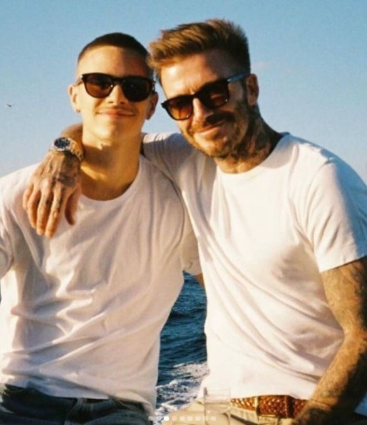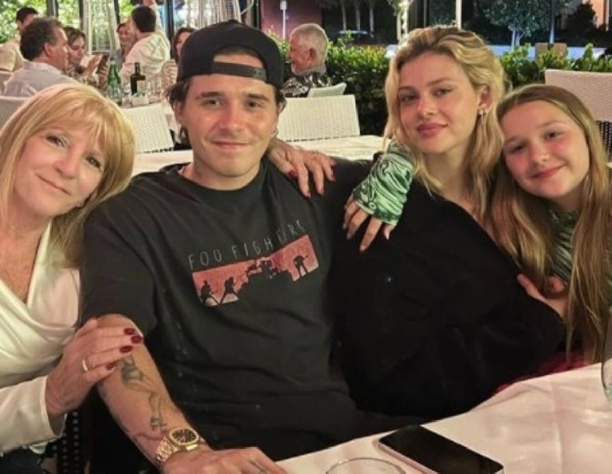 En una imagen se podía ver a David con Posh en una salida nocturna, mientras que en otra Brooklyn, de 22 años, y su novia Nicola Peltz, de 27, se sentaban junto con la abuela Jackie y la pequeña Harper, de 10 años. En otra imagen, la novia de Romeo, Mia Regan, de 19 años, abrazaba a Harper en una playa de arena blanca.