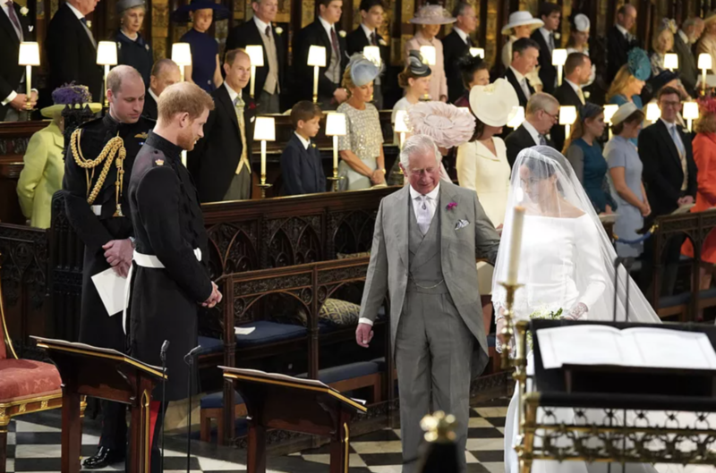 El retrato fue tomado por el fotógrafo Alexi Lubomirski en el Castillo de Windsor después de su ceremonia de boda en la Capilla de San Jorge,y en ella se ve al Príncipe Harry y Meghan rodeados del cortejo nupcial.