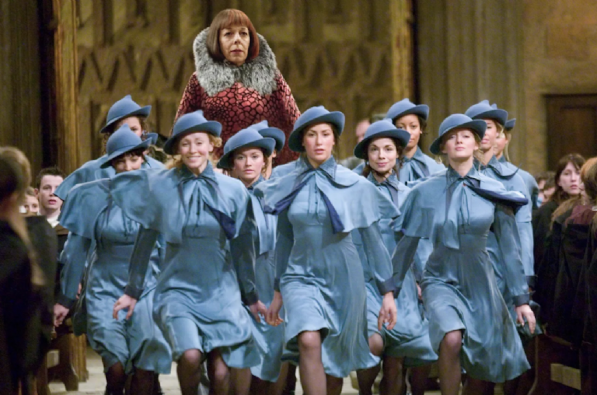 En la franquicia de magos, el uniforme de los estudiantes de la escuela francesa, Academia Beauxbatons, usan abrigos muy refinados para viajar en sus carruajes mágicos, el diseño es muy similar al que vistió la ex duquesa de Cambridge y que ha sido una pieza recurrente de su guardarropa.