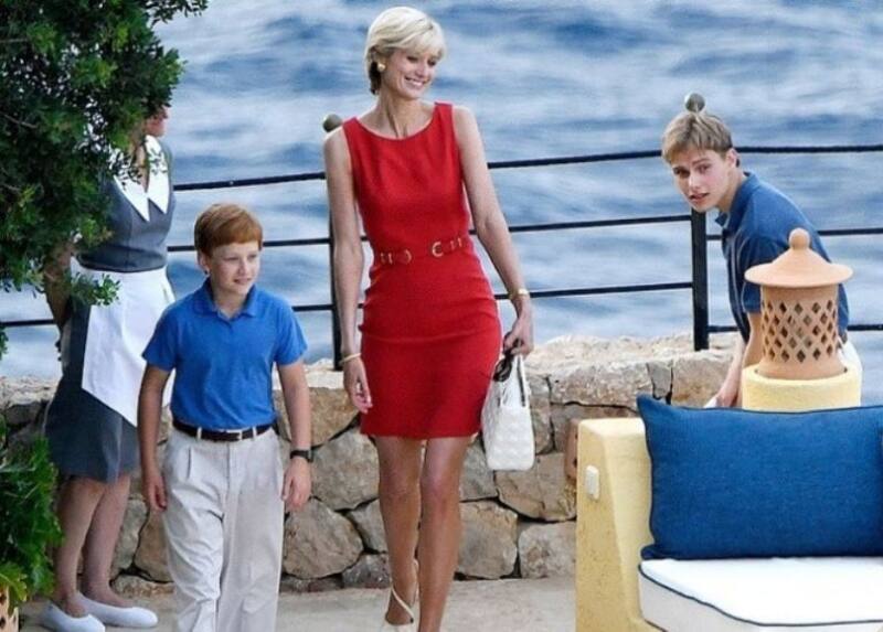 Elizabeth Debicki fue captada en una lancha junto a los actores encargados de interpretar a William y Harry (Twitter)