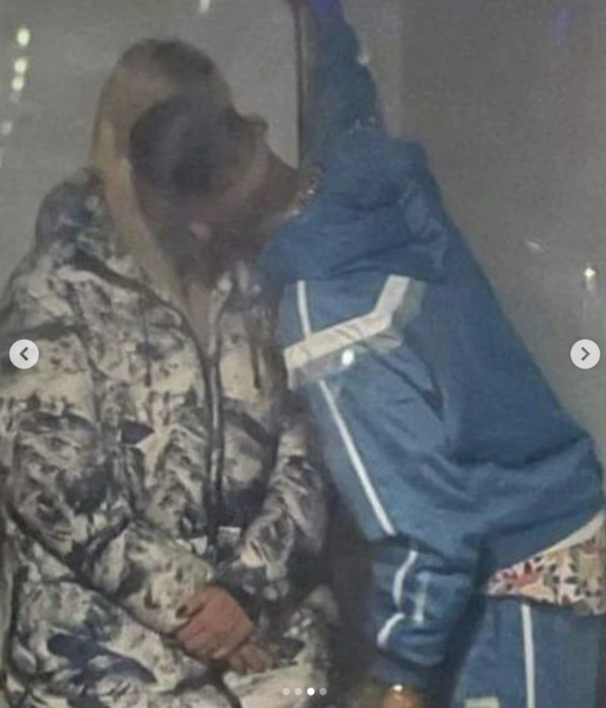 En la fotos se ve a L-Gante con un conjunto deportivo dándole un beso a Wanda, quien viste una chamarra grande camuflada y los brazos cruzados recibiendo el cariño de quien sería su nueva pareja amorosa.