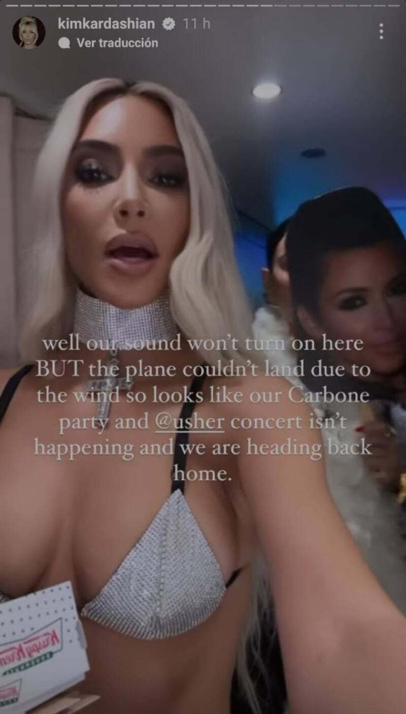 No obstante, sus planes cambiaron cuando el avión privado no pudo aterrizar debido al viento y se vieron en la obligación de regresar a Los Ángeles. “Bueno, nuestro sonido no se enciende aquí, PERO el avión no pudo aterrizar debido al viento, así que parece que nuestra fiesta en Carbone y el concierto de Usher no está sucediendo y nos dirigimos de regreso a casa”, comentó Kim Kardashian.